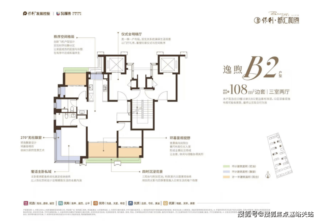 98㎡边套双270°无柱飘窗、108㎡边套从卧270°无柱飘窗、126㎡边套双270°无柱飘窗,项目打制了闵行首个全景舱户型?。